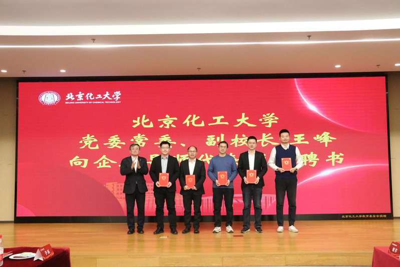 随后,谭天伟校长为卓越工程师学院学位评定分委员会主席王峰和委员会委员颁发聘书。卓越工程师学院学位评定分委员会由校企专家联合组成,将进一步完善学院工程硕博士学业评价和学位授予机制,保证卓越工程师培养质量。